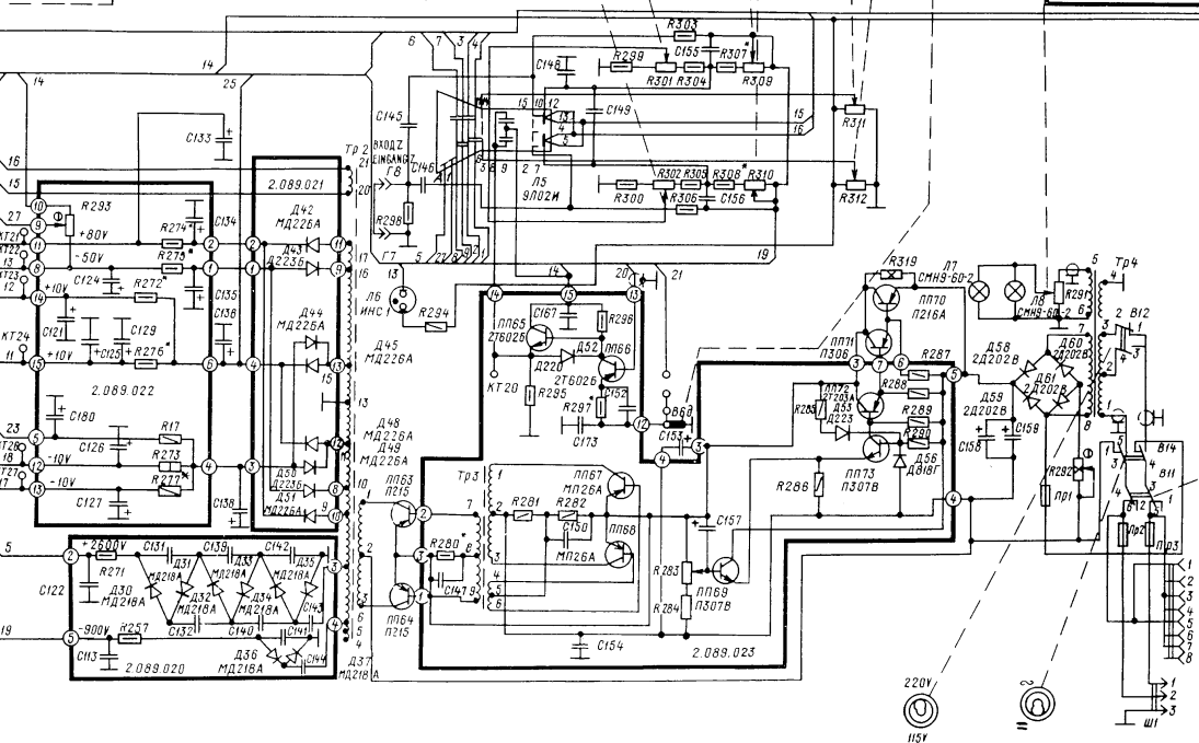 Ремонтирую данный прибор. Анамнез - не работает БП. Проверял всё традиционно, заменил сгоревшие пп70, пп69, пп63, пп64. Вместо п216-п215 поставил TIP42C. Вместо R280 воткнул подстроечник. также заменил высохшие в хлам С147 и С157. Стабилизатор и задающий генератор преобразователя работают нормально, но когда подключаю питание а точку 2 трансформатора тр2, жуткий потребляемый ток, неустойчивая генерация и др. Выпрямительные диоды д42-51 проверял, электролиты на выходе тоже, отпаивал даже выводы вторички от тр2, умножитель отсоединял.