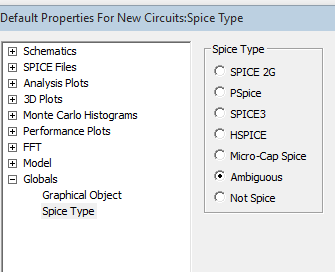 "SPICE Type. Позволяет установить разновидность SPICE-формата, кото-