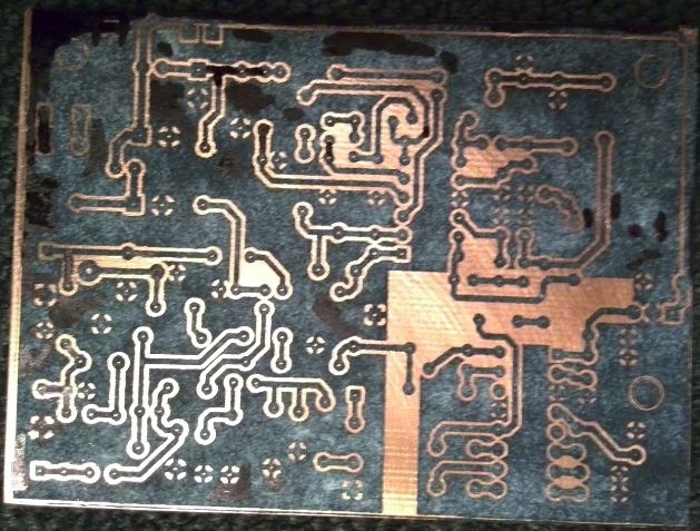 Самое обидное что всякие земляные сопли отечатались и протравились идеально, тонюсенькая внешняя рамка отпечаталась,  закоротила землю с внешней питающей шиной и замечательно протравилась, а есиб дорожка была, сожралась бы к чертям... Ну не закон подлости?  >:( >:( >:(