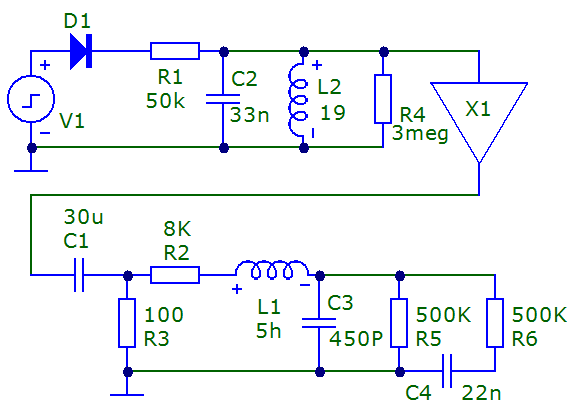 Верхняя часть с усилителем Х1 включительно - генератор затухающего синусоидального