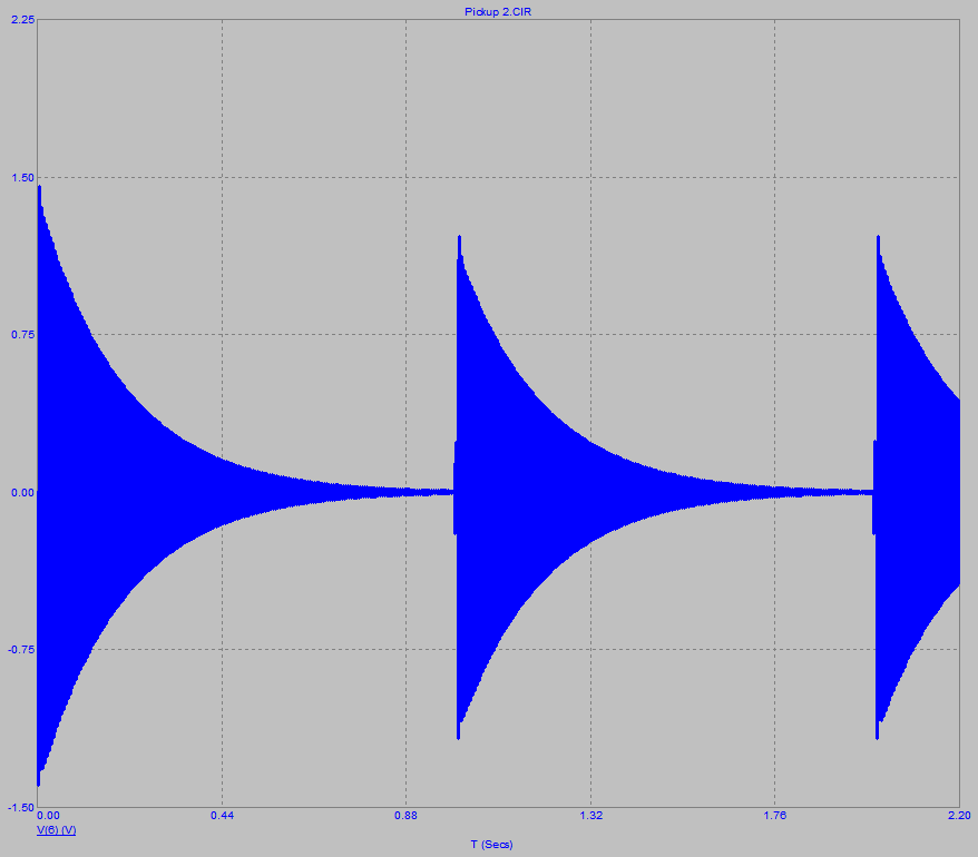 Ну, а амплитуду пика и постоянную времени затухания, определить из натурных измерений подключив гитару к запоминающему осциллу или компу. Параметры звучков и проводов по идее справочные. Правда я их помню довольно смутно, об этом, кстати, хотел бы посоветоваться с камрадами - то есть какие номинальные уровни и пиковые уровни принимаются для сигналов гитары при проектировании схем и моделлировании (для среднестатистического сингла и хамбакера), быть может наиболее характерные частоты тонов на которых проводить проверку (честнее, конечно же, во всем диапазоне от открытой 6-й, до 22-го или 24-го 1-й, без учета обертонов, но для экономии времени и упрощения задачи, хотя бы отдельные ноты). И еще интересна судьба той давнишний темы по сознанию стандартизированного набора тестовых семплов для реампинга через примочку или усь, с тем чтоб внести больше единообразия в методику проверки, да и опять же не все играть нормально умеют (я например не умею), а без хорошей техники исполнения потенциал устройства может оказаться не раскрытым. Чем там все закончилось?