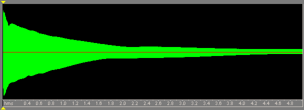 Форма огибающей, правда, несколько иная: сначала идет мощный "шлепок" оторвавшейся от медиатора струны, после него 2-3 высоченных пика, потом начинается регулярно спадающий сигнал, начальные пики которого примерно в 1.5-2 раза ниже описанных "высоченных пиков".