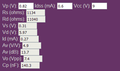 Что ещё в статье: расчет коэффициента усиления, в зависимости от задач, коррекция АЧХ, и т.д. Но. Если вы собираете какой-нибудь проект, а там в схеме J201, а J201 у вас скорее всего нет, или есть что-то промаркрованное как 201 и оно определяется как JFET и работает нормально, то можно измерить его Vgs(off) и Idss забить значения в калькулятор на сайте ранофгрув и получить значения для обвязки каскада. И принять решение - взлетит ваша схема с номиналами резисторов в схеме или нет. А если нет, то их можно подкорректировать, заменить вашими значениями из калькулятора.