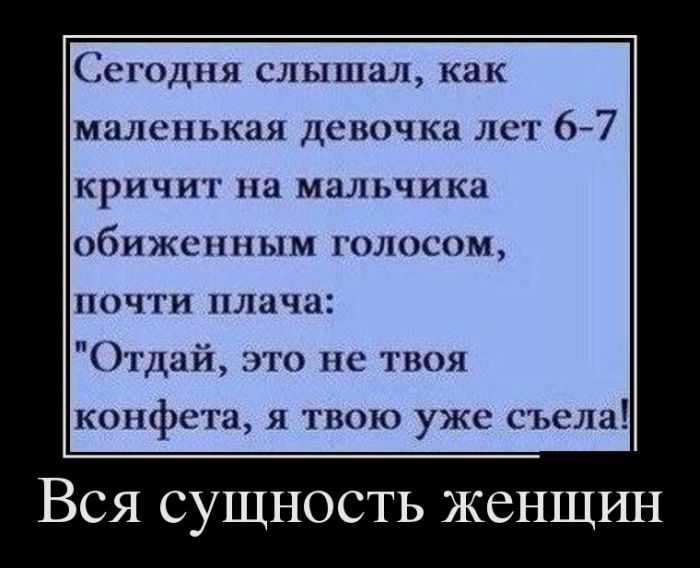 ...Ну что ты, девочка, некрасивых женщин не бывает, вытри слёзки, подними личико ОХ ТЫ Ж Б@@ТЬ!!!