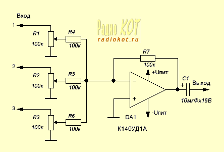Может применить вот такой микшер? С большим номиналом у разделительных резисторов?