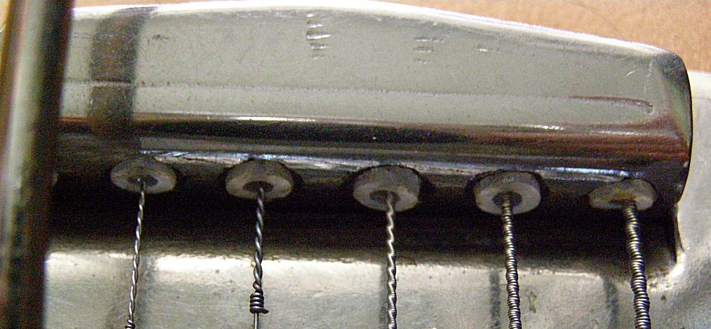 На ней еще в 80-е были первые такие же эксперименты, поэтому на струнодержателе уже были рассверлены отверстия для изоляционных втулок.