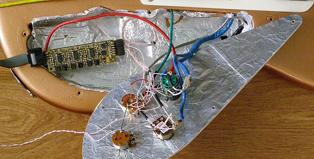 Была даже мысль сделать электронику в коробке, связав трёхметровым самодельным патчкордом из шести витух. Да подходящего разъёма не нашлось, да и место в гитаре имелось - потому внешний вариант оставил на потом.