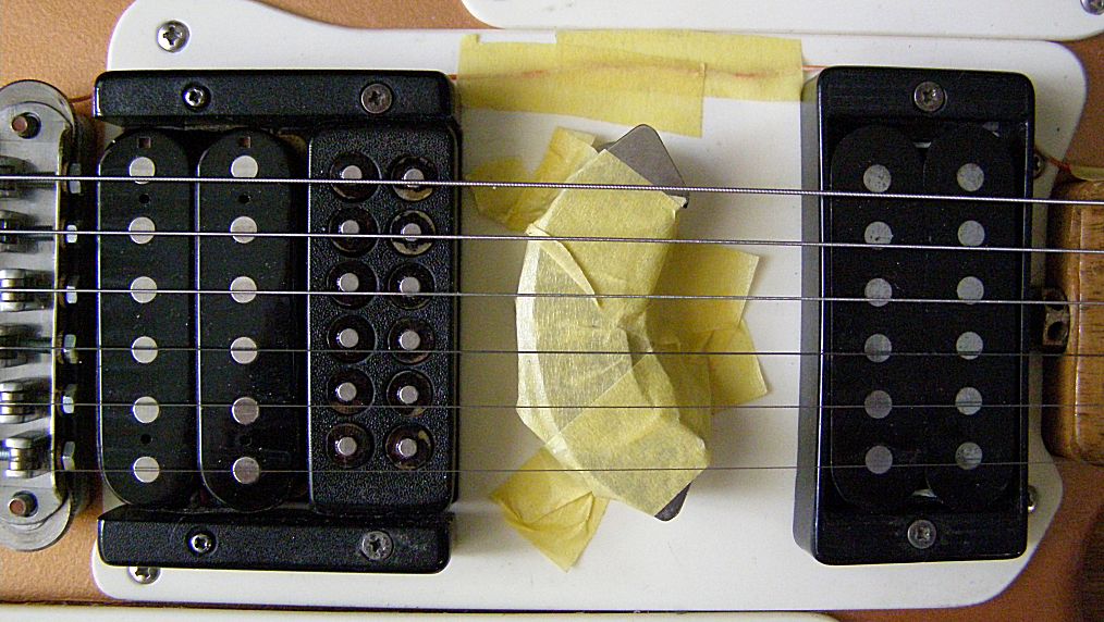 В общем, для кое-какого сигнала хватало и магнитов звукоснимателей, но реально этого мало, и было применено два редкоземельных магнита от дохлого "винта", наскоро прилепленных скотчем.
