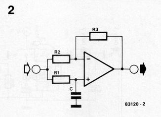Входной сигнал вызывает заданное постоянное напряжение на Cl, так что операционные усилители могут работать квазисимметричным образом, несмотря на одиночное напряжение питания.