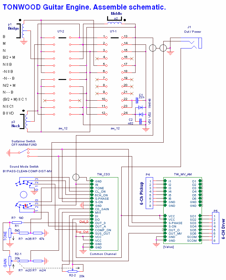 Для инфы, и , чтобы не потерялось, (мало ли че, я уже старый... ;-) ) вывешиваю общую обьединительную схему того, что напихал в свой Ibanez RG370DX.