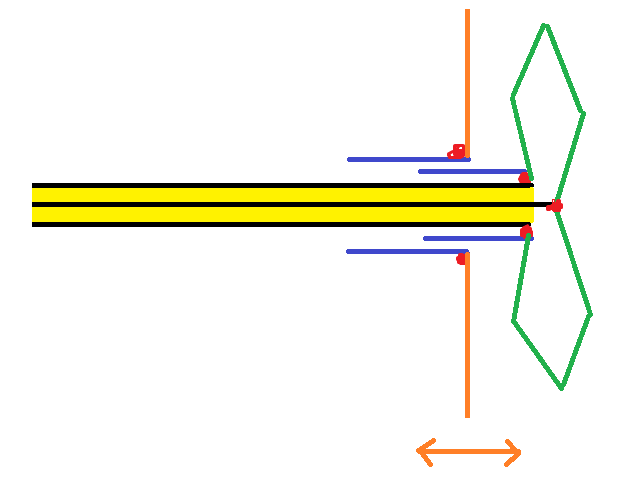 На рисунке кабель с жёлтым диелектриком. Синим нарисован огрызок телескопической антенны. Оранжевым - отражатель. Зелёным - сам излучатель. Красным - места пайки. Надеюсь всё понятно :)