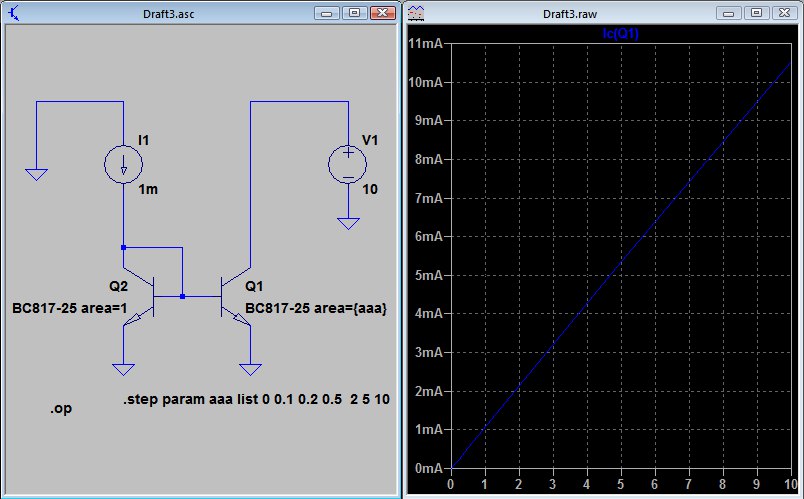 Вот пример, как масштабируется токовое зеркало площадью транзистора.