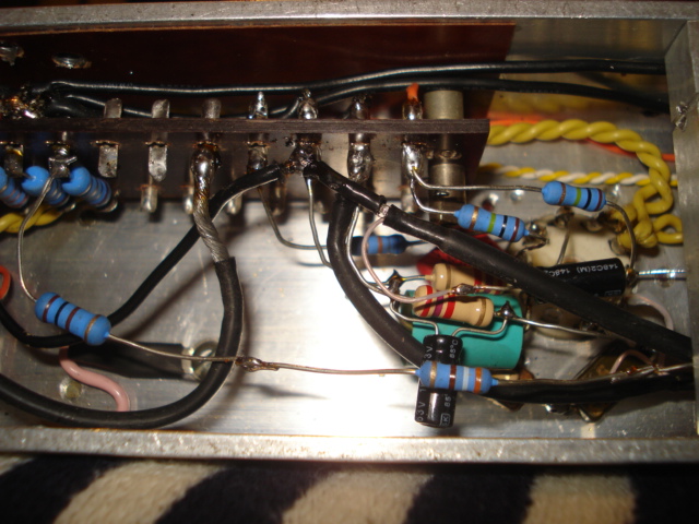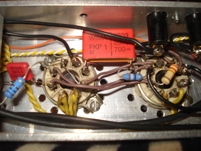 Сегодня перепаял усилитель полностью. Сделал монтаж непосредственно на ламповых панельках, что уменьшило длину проводов. Фактически детали с панельки идут непосредственно на контактную панельку и по правилам разводится по местам. Только сильно не пинайте за качество монтажа. Ставил задачу уменьшить длину проводов... Поймаю звук, то наведу порядок и с монтажом. Фон исчез, но появились постоянные шорохи в динамиках. Громкость звука и качество замечательное, если опять же не принимать во внимание эти шорохи.  :)
