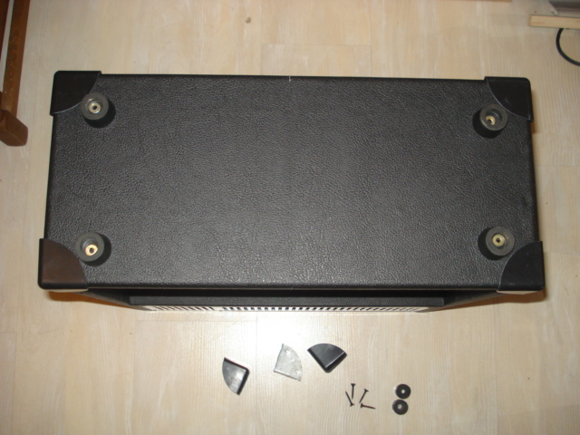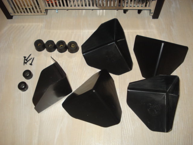 Сегодня нашли в загашнике огромные уголки капролоновые или полиэтиленовые, от какой-то упаковки аппаратуры и резиновые ножки от какого-то военного аппарата. Уголки были значительно уменьшены до разумных размеров и, как нам кажется, очень грамотно подошли к изделию. Думаю что эта фурнитура придаёт кубу профессиональную серьёзность.  Вот результат сегодняшней работы: