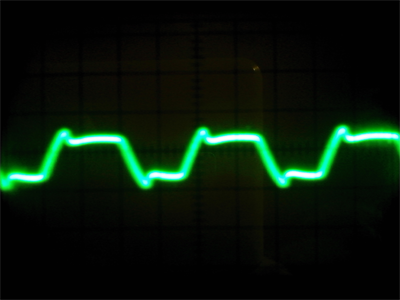 Причем эти вот "рога" уже проявляются и по звуку и на осциллограмме уже в середине настройки Р2. Вот они:
