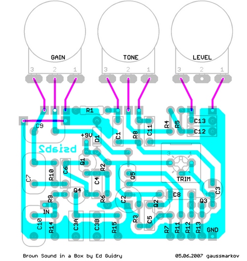 Было облазино много разных тем и в начале я остановился на примочке E-Recto авторства OldMike'a, потом на той же примочке только версии EugenyS'а . Однако пока что этим планам сбыться не суждено. К первой нет печатной платы, ко второй есть, но уже известны внесенные EugenyS'ом изменения и улучшения, а плата не переделана. В переписке же с Женей он посоветовал мне найти и спаять BSIAB - потому как очень этот бсиаб ахриненный, по его мнению, а Женя в свою очередь собирался через недельку-другую намалевать обновленную печатную плату на E-Recto by OldMike EugenyS' ver. 0.2.