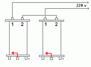 На рисунке нарисовано правильно, если не трогал сетевые обмотки или мотал в том же напрвлении, что и были. Самое простое, действительно, лучше включить через лампочку. В самом худшем случае она будет светиться полным накалом. Тогда и предохранителей не надо и сразу видно косяк или нет. А вообще пусковой ток, действительно, большой, как у торов. Кстати, он еще зависит от того, как собрал трансформатор. Если плохо подогнал железки и плохо стянул будет большой ток покоя и повышенный пусковой. Вообще при разборке надо было пометить железки фломастером, чтобы потом не попадать. Ну да лампочка все покажет. При включении она вспыхнет и погаснет. И чем меньше она вспыхивает тем лучше транс. Правда вспыхивание еще зависит в какой фазе синус в розетке, в момент включения. Но это несколько раз воткнуть выткнуть и все будет понятно.