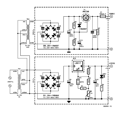 В узле электронного дросселя (ЭД) в приведённой схеме БП транзистор (ПТ) имеет потенциально опасное включение - в таком виде как есть может возникать паразитная генерация вплоть до разрушения самого ПТ. В цепь затвора рекомендуется ставить сопротивление, которое вкупе с паразитной входной ёмкостью будет работать антизвонной цепочкой. Ну и при монтаже никаких длинных проводников к этому ПТ. Кстати, если ЭД собран правильно и работает, то щелчка при включении быть не должно.