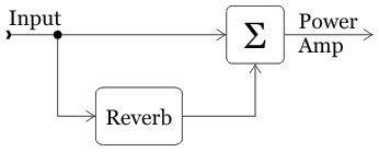Скопировал не думая схему по ссылке выше (вход -> C4+R8 -> выход ревера и вход усилка). Потом немного подумал, почему это не работает и как вообще должно работать и в общем ничего не понял, как оно в той схеме вообще работает.