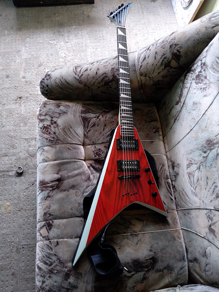 Корпус мне достался очень давно, в 2010 г. Изначально это была мастеровая гитара начала 2000-х, семиструнная, с floyd rose и семиструнными хамбакерами соответственно.