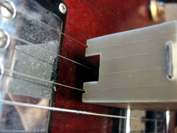 Первый е-смычок, который я увидел в конце 70-х, имел опорные башмаки с пропилами, которыми опирался на крайние струны. Для игры оставались четыре свободных струны.