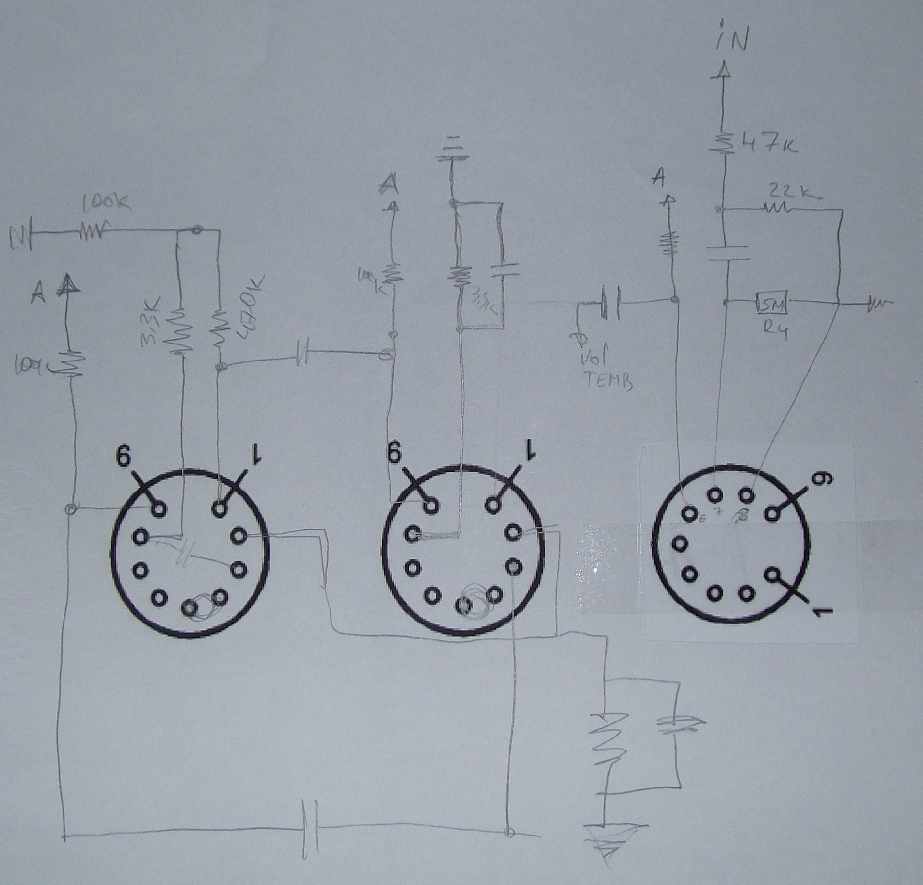 По поводу схемы. Допустим, убрали тремоло. (хотя его очень жалко). Остался второй тремоло канал, толку от которого теперь ноль.  Вся разница  там это  электролит в катодной цепи, немного другой номинал резистра катодного и дополнительный фильтр на выходе, инфранизкие частоты от тремоло убирать.