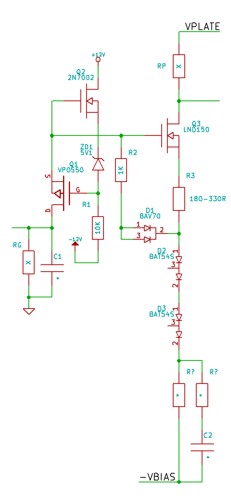 Комрады, я пришёл к такому варианту с латералами: все три искажающих каскада одинаковы по обвязке (за исключением шунтирующего конденсатора в аноде) и никаких емкостей в истоке. Этот "стандартный" каскад настроен на максимум усиления, при котором осциллограмма не отличается от лампового оригинала. А вот его ачх формирует цепь на затворе. Пришёл к этому долгим опытным путём и весьма доволен результатами. Обвязка минимальна по числу деталей, всё просто и стабильно. Банановское включение мне никак не катит. Да и VBIAS  для всех каскадов один, что так же экономия деталей.