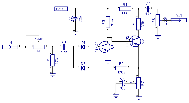 Вообще влияние на осциллограмме довольно косметические, но на самом деле эффект слышен и приятен. Но там где один транзистор, просится второй, но вопрос как его засадить. Я вот такой способ переменил: