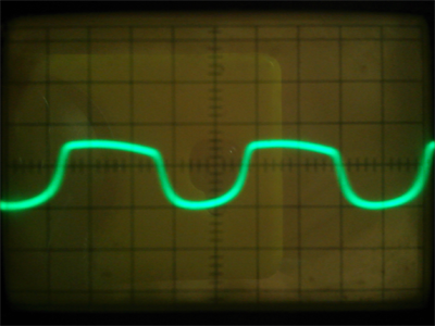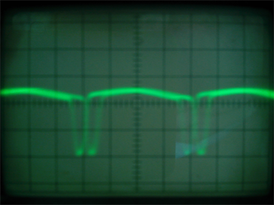Диоды Д18, но уровень сигнала был маленький. Обычная синусоида вот так смотрелась в массштабе всей серии: