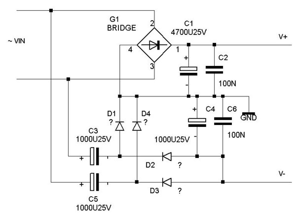 Миша, напряжение на выходе нижнего плеча (-V) будет удвоенное! У тебя внизу схема умножителя на два.