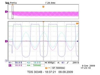 Напряжение на катоде изменяется почти в два раза от начала подачи сигнала до устоявшегося режима.