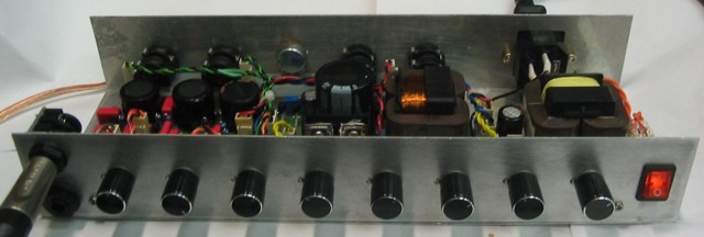 Транзистор перед ТБ - имитатор КП в Ректе - выбрасывать категорически не рекомендую :), он очень правильно влияет на звук. Замена - любой современный кремневый транзистор с усилением по току 100-200. Внимание - в этой конфигурации ТБ максимально приближен к Ректовскому (проводились специальные тесты и подгонка на живой Ректе) - но, как и у Ректы - глубина регулировок, особенно СЧ, оставляет желать лучшего. Потому - кому хочется нормальных регулировок в ущерб копийности - смело меняйте С24 на 1нФ - а пот Мида - на А10к, при этом станет регулироваться середина, хотя и на несколько другой частоте, чем у Ректы. И последнее - это спикосимулятор. Неплохая схема, хотя для "высокопесчаного" хайгейна и неидеальная. Печатки нет - в таком наборе я эту схему не собирал :).
