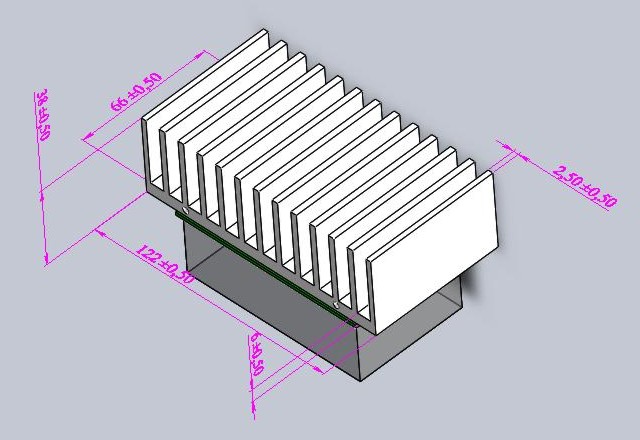 50х123х37 мм, толщина основания 6 мм. Количество ребер - 13. Площадь 575 кв.см.