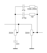 Вот и считаем... Чтобы по картинке №2 получить завал килогерц с полутора (это, конечно, с потолка взято, но должно быть слышно) - суммарная ёмкость цепочки после регулятора вольюма должна быть около 5 нФ. Хм, не так уж и много... можно нахватать и на тонких экранированных проводах в гитаре, и на монтаже в преампе, и на длинном недорогом кабеле... Ищи, методом исключения. Удачи!