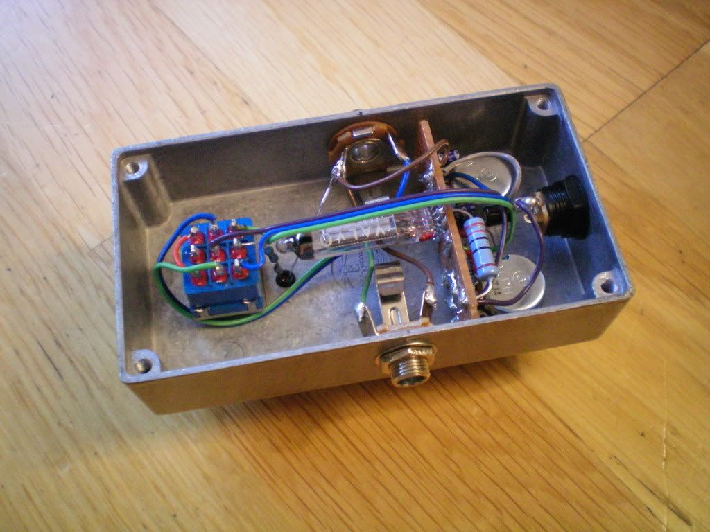 Другое дело, сделать полностью батарейную примочку, которую можно влючать будет хоть в лесу, все поместить в один корпус: плату, +2 Кроны, +1-н элемент 1,2В для накала - вот и вся примочка. И никаких "хвостов " с внешним питанием. Вот здесь, мне кажется можно и поизвращаться с низкой анодкой. :)