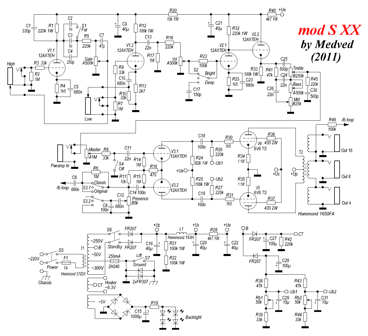 Померил анодку вообще без нагрузки 420..425 В. Под нагрузкой будет около 400 наверное :)