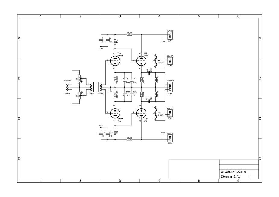 Схема преда простейшая. Но компоненты должны быть как можно более качественными. "Большие" электролиты - Cornell Dubilier, электролиты в цепи катода - Elna Silmic II, шунты - К73-16 и Wima. Резисторы думаю закажу Kiwame или ПТМН. Потенциометр - Alps RK27, скорее всего с мотором...