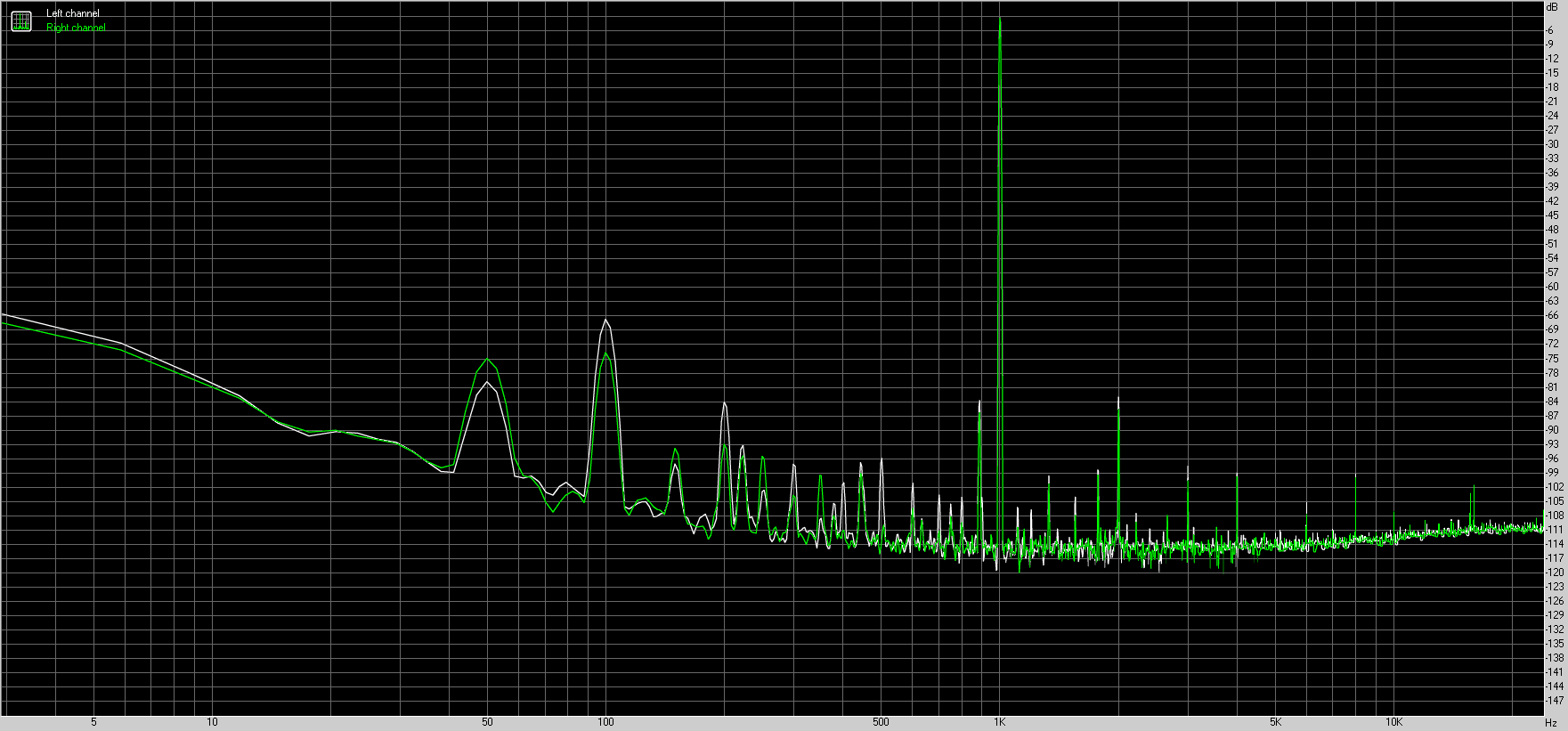 -80 дБ относительно какого входного уровня в мВ? Много гармоник, кратных 50 Гц. Смущает густой забор, начинающийся от 200Гц - интермодуляция?