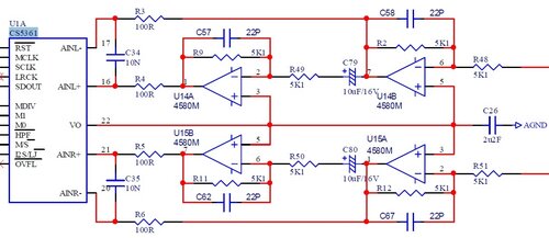Также было организовано раздельное питание для VD и VA кодеков, и также увеличены "подпорки" виртуальной средней точки АЦП/ЦАП 10мкф->470мкф.
