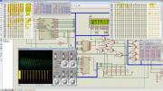 К чему это я? Да в продолжение темы самодельных клавиш :). Взыграло во мне желание сделать свой Hammond! И года полтора назад я начал этот проект (дело двигается медленно - я имею привычку "забрасывать" на некоторое время проект, от которого устал). Естественно - я не ставил цель сделать электромеханический инструмент. Я решил сделать программную эмуляцию механического вала с задающими колесиками - генерировать для каждой клавиши набор из 8 (для начала :)) синусоидальных гармоник, громкость каждой из них задавать своим регулятором. Первоначально за основу был взят процессор Atmega8. Мне удалось "засунуть" в него 24 синусоидальных осциллятора - набор гармоник для трех нажатых клавиш (проц генерил звук на частоте сэмплирования 31,2кГц, вывод шел на 12битный ЦАП по SPI, гармоники были строго кратны основной частоте - х2, х3, х4 и т.д.) Амплитуды гармоник задавались выбором соответствующей таблицы синусов (было 8 таблиц с разной амплитудой). Перкуссия обеспечивалась переключением таблиц на заданной гармонике (огибающая получалась ступенчатой), вот результат моделирования в Протеусе звука с перкуссией: