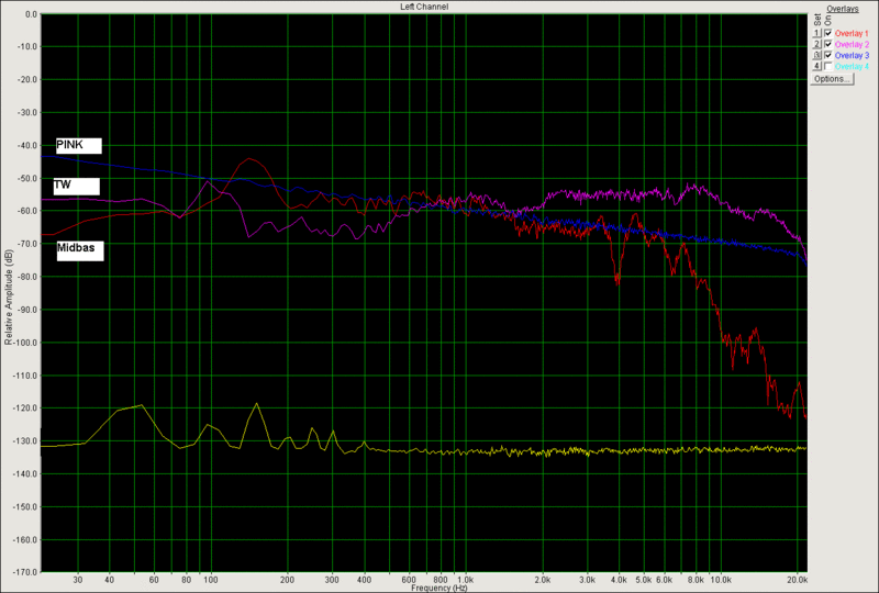Очень трудно судить об АЧХ, если исходный тест ("чистый") сам из себя кривой - потому надо использовать всё же не розовый шум, а белый.