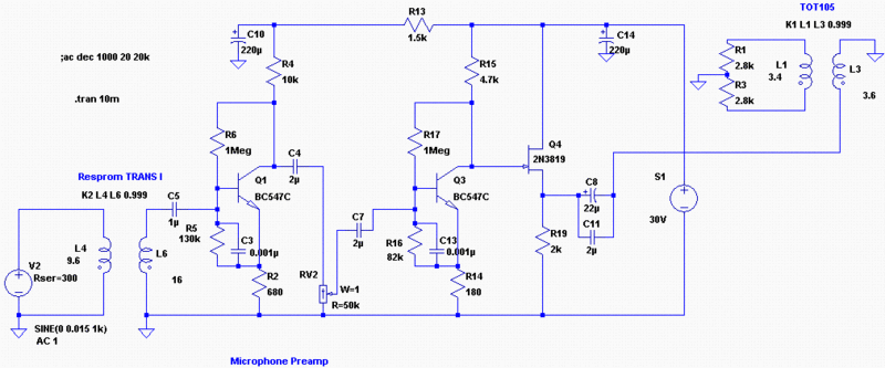 Сегодня провел полевые испытания тракта без ОУ, выяснил, что для современного АЦП типа TI4220 и современного конденсаторного микрофона достаточно усиления всего на паре транзисторов.