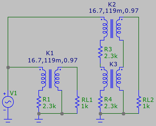 - R1, R3 и R4 - активные сопротивлния первичных обмоток (сопротивления вторичных обмоток, равные 15 Ом, опущены ввиду их незначительности);