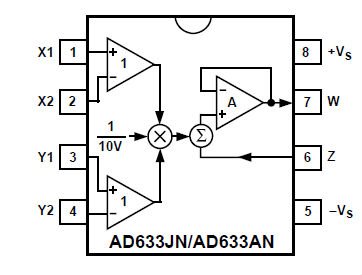 описание микросхемы АD633 на русском языке - http://www.analog.com/ru/special-linear-functions/analog-multipliersdividers/ad633/products/product.html