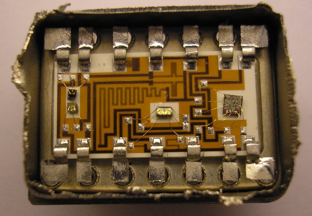 Я же использовал "истинные" 284УД1 еще в первой половине 70-х, тогда они и внутри выглядели совершенно иначе: соединительные шины между выводами корпуса и ситалловой подложкой были выполнены не из ржавого стального проката, нарезанного ручными ножницами по металлу, а из золотой, протянутой через калиброванные фильеры проволоки очистки 999.99. Фото парочки таких микросхем есть в описании по Вашей ссылке.