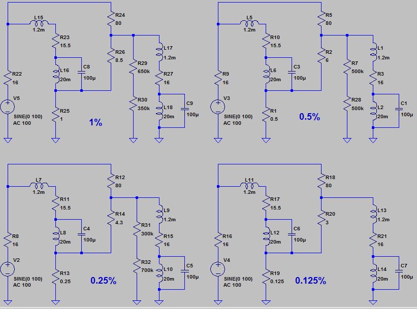 Погрешности R1+R2 для К1.3-0.15 получились 0.75% 1.34% 1.59% 1.75% соответственно. Как с этим жить я не знаю :) Дай бог чтоб мои 5% резисторы уложились в это :) Я молчу о том какие резонансы возикают в наших комнатах, что будет даже с 1% резисторами при нагреве в работе и какое расхождение между нашими реальными кабинетами и нашими реальными Dummy нагрузками ;)