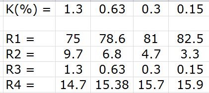 Бери мои расчёты R1-4, дели ровно на два (согласно Витиной статье) и будет тебе счастье  ;)