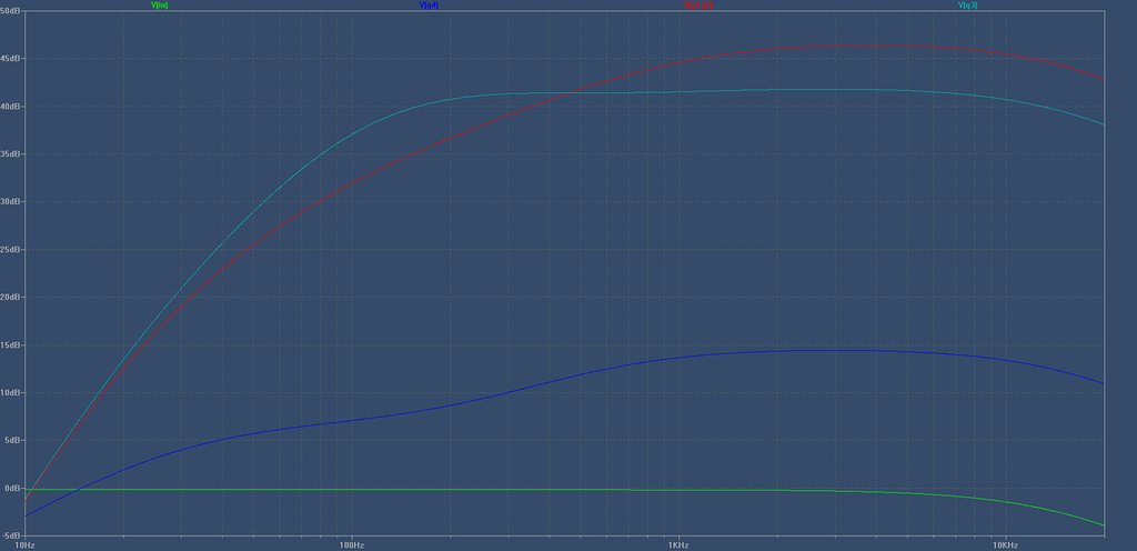 Да, было бы интересно посмотреть покаскадные АЧХ с мЕньшими номиналами в цепях истоков.