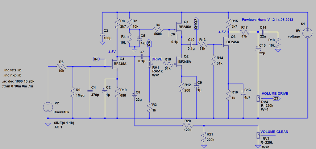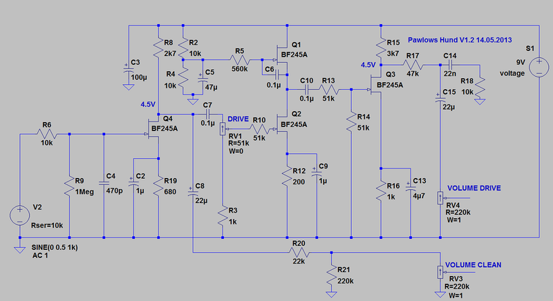Дык, а не было наезда. Велентиныч только лишь спросил  по поводу некоторых номиналов оригинальной схемы, вот только непонятно почему меня. :-)  Я ведь эту примочку не разрабатывал. Я предложил небольшую, но концептуальную идею модификации - фильтрация питания и уменьшение тока первого каскада и смещение от него второго. Всё.  Есть автор примочки, ему интересно - пусть попробует. На остальную обвязку я не смотрел ибо задачи такой не было.