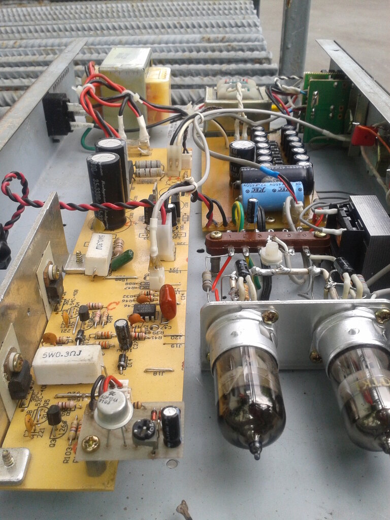 На плате есть место для еще двух транзисторов, чтобы выходные транзисторы были включены составными. Но вместо них стояли перемычки (на последней фотке хорошо видно).